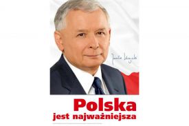 Plakat przedstawia Jarosława Kaczyńskiego na tle biało-czerwonej flagi. Na dole znajduje się hasło: „Polska jest najważniejsza”. Według Pawła Poncyljusza, rzecznika sztabu Jarosława Kaczyńskiego: plakat jest tradycyjny, bez ekstrawagancji. Nie ma żadnej sepii. Kolorystyka jest jak najbardziej kampanijna.