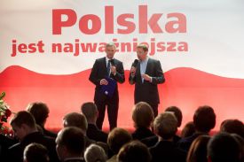 Salę wypełnia już około kilkuset zaproszonych osób, wśród nich jest wielu polityków PiS m.in. - szefowa sztabu kandydata Joanna Kluzik-Rostkowska, rzecznik sztabu Paweł Poncyljusz, wiceprezes partii Adam Lipiński; są też eksperci, którzy uczestniczyli w organizowanych w kampanii debatach - m.in. prof. Jadwiga Staniszkis.